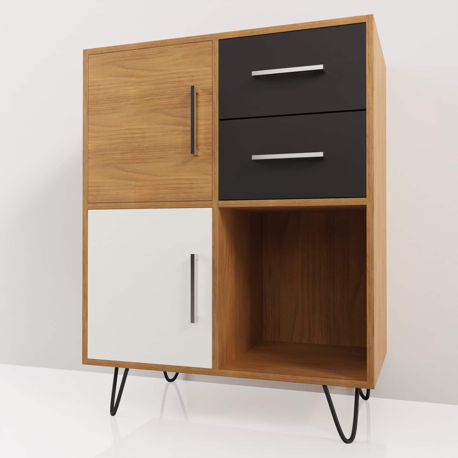 - Composición: 2 puertas, 2 cajones y un estante