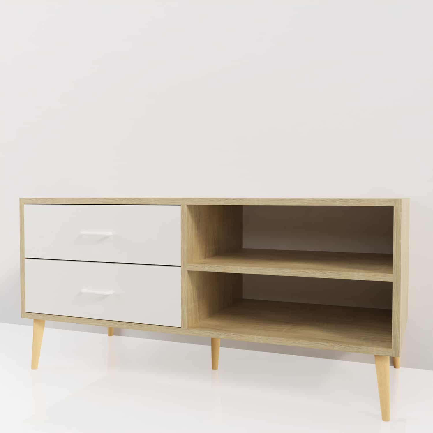 Aporta un toque de frescura nórdica a tu salón con nuestro mueble para TV de madera clara de estilo escandinavo. Diseñado para combinar funcionalidad y estética, este mueble ofrece un práctico espacio de almacenamiento a la vez que añade un toque de elegancia a tu hogar.