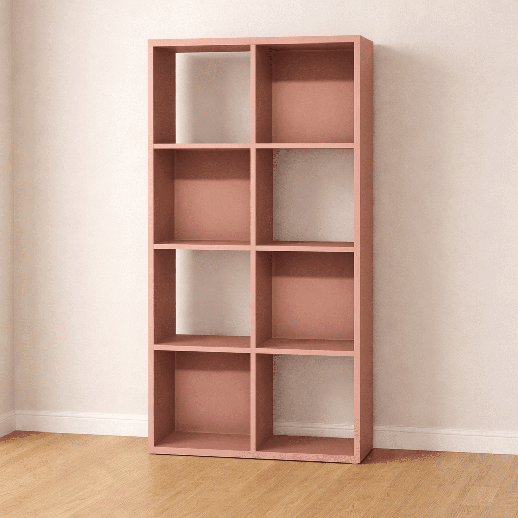 Esta biblioteca a medida rosa con 8 estanterías aporta un toque original y elegante a su interior, al mismo tiempo que ofrece un amplio espacio de almacenamiento.