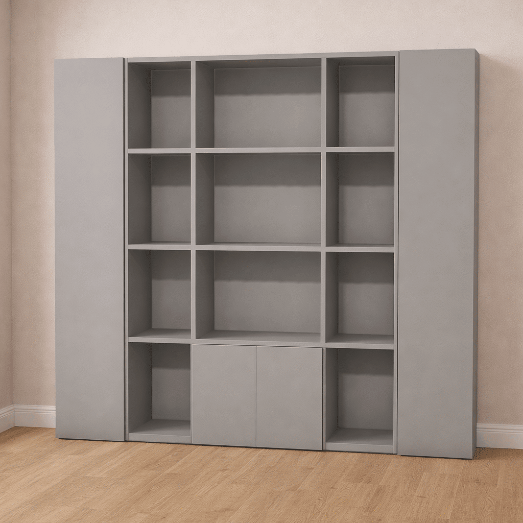 Gracias al diseño a medida, cada detalle es totalmente personalizable: dimensiones, acabados y configuración de las estanterías, para crear un mueble único perfectamente adaptado a sus necesidades.