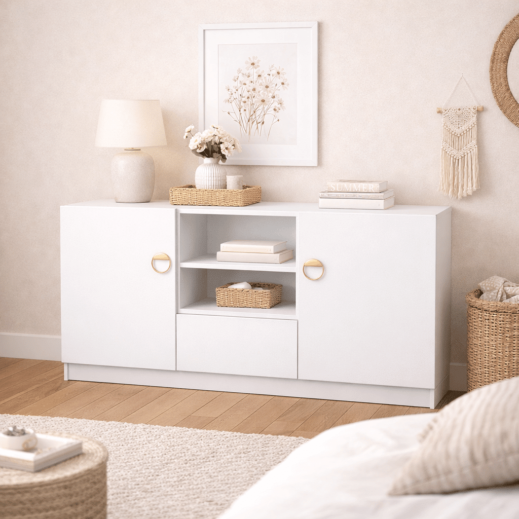 Diseñe su aparador a medida gracias a nuestro configurador 3D sencillo e intuitivo. Personalice las dimensiones, los espacios de almacenamiento y los acabados en tiempo real para crear un mueble perfectamente adaptado a su interior.