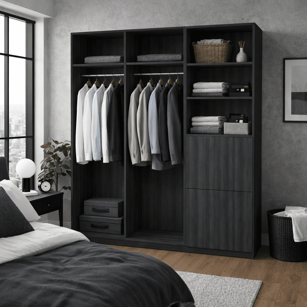 Totalmente personalizable, le permite elegir las dimensiones, los acabados y la disposición de las barras para colgar, estanterías y espacios de almacenamiento para crear un vestidor único, perfectamente adaptado a sus necesidades.